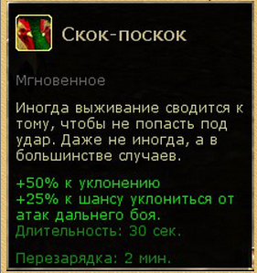 - Имитация опоссума. В простонародье "упасть тапочком". Это умение работает и на ходу, что помогает пробегать опасные места, населённые не только обычными врагами, но и лучниками (что еще опаснее). Единственный минус, сжигается мана, хватает её на три-четыре таких "использования". Проверено: и впрямь, если тыкать имитацию на бегу, агро сбрасывается. Но если враг быстренько вас куснул, или лучник успел выстрелить - тут даже эта хитрость не спасёт.